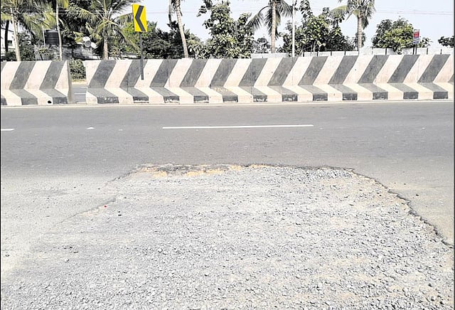 இதனை சீரமைக்க கடந்த ஆண்டு டிசம்பர் மாதம் நெடுஞ்சாலைத்துறையினர் சாலையை தோண்டினார்கள். குழாயை சீரமைத்து விட்டு பள்ளத்தை மூடினர். முறையாக ஜல்லி மற்றும் தார் போட்டு சாலை சீரமைக்கப்படவில்லை. இதனால் அந்த சாலை பள்ளமாக இருந்தது. மேலும் அந்த பகுதியில் எந்த ஒரு எச்சரிக்கை பலகையும் இல்லாததால் பள்ளம் இருப்பது தெரியாமல் அருகில் வரும்போது திடீரென பள்ளத்தில் இறங்கி விடுகின்றனர்.