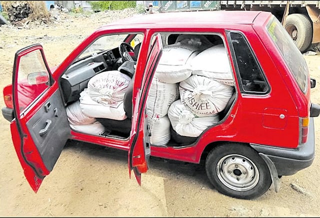மேற்கண்ட காரில் 50 கிலோ எடை கொண்ட மொத்தம் 14 மூட்டை ரேஷன் அரிசி இருப்பது தெரியவந்தது. இதன் மொத்த எடை 700 கிலோ ஆகும். போலீஸ் விசாரணையில் சென்னை பெரம்பூரில் இருந்து ஆந்திர மாநிலம் சூளூர்பேட்டைக்கு ரேஷன் அரிசி மூட்டைகள் கடத்திச்செல்ல முயன்றது தெரியவந்தது.