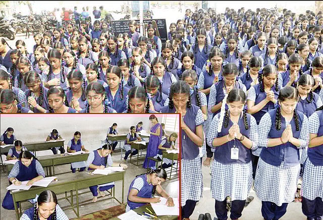 சில பள்ளிகளில் தேர்வு தொடங்குவதற்கு முன்பாக பள்ளி வளாகத்தில் மாணவ, மாணவிகள் வரிசையாக நின்று அதிக மதிப்பெண் பெற வேண்டி பிரார்த்தனை செய்தனர். சில பள்ளிகளில் ஆசிரியர்கள், மாணவ, மாணவிகளுக்கு தேர்வு குறித்து அறிவுரை வழங்கினர்.
