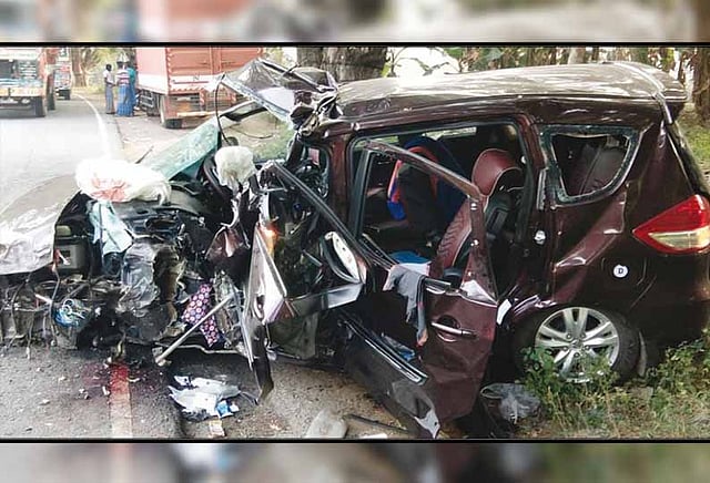 ஆந்திரா மாநிலம் கிருஷ்ணா மாவட்டத்தில் உள்ள விஜயவாடா எனமலாகுதுளு பகுதியை சேர்ந்தவர் ஆஞ்சநேயலு (வயது 30). இவர் அந்தப்பகுதியில் உள்ள ஒரு மருத்துவமனையில் உதவி பொதுமேலாளராக பணியாற்றி வந்தார். இந்தநிலையில் ஆஞ்சநேயலு மற்றும் அதேப் பகுதியை சேர்ந்த சூரிபாபு (35), வெங்கடேஷ் வரராவ்(30), நாக மல்லேஸ்வர ராவ்(28), போத்துராஜ்(31), அசோக் (30) ஆகியோர் அய்யப்பனுக்கு மாலை அணிந்து சபரிமலை செய்ய முடிவு செய்தனர். அதன்படி அவர்கள் அனை வரும் ஒரு காரில் நேற்று முன்தினம் இரவு புறப்பட்டனர். காரை அசோக் ஓட்டி னார். காரின் முன்பக்க இருக்கையில் ஆஞ்சநேயலு இருந்தார். மற்றவர்கள் அனைவரும் பின்னால் அமர்ந்து இருந்த னர்.