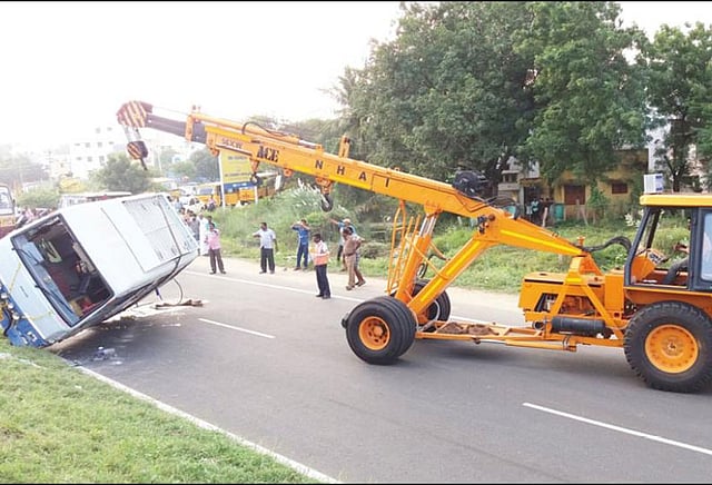 நேற்று காலை பழனிக்கு சென்று சாமி தரிசனம் செய்துவிட்டு, பின்னர் அனைவரும் அதே வேனில் வீட்டிற்கு திரும்பி சென்று கொண்டிருந்தனர். திருச்சி மாவட்டம், நெ.1 டோல்கேட்டை அடுத்த கூத்தூர் அருகே திருச்சி- சென்னை தேசிய நெடுஞ்சாலையில் வேன் வந்தபோது, அதே திசையில் வந்த கார் ஒன்று வேனை முந்தி செல்வதற்காக வேகமாக முன்னோக்கி சென்றது. அப்போது காரின் குறுக்கே மாடு ஒன்று ஓடியதால் அதன் மீது மோதாமல் இருக்க கார் டிரைவர் திடீரென காரை வலது புறமாக திருப்பினார். இதில் எதிர்பாராதவிதமாக வேன் மீது கார் மோதிவிட்டு நிற்காமல் சென்றுவிட்டது. இதில் நிலை தடுமாறிய வேன் சாலையில் தலைகுப்புற கவிழ்ந்தது.
