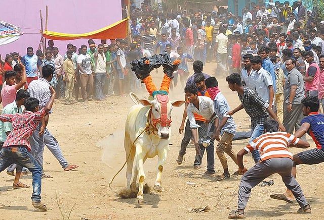 இந்த நிலையில் காலை சுமார் 9.30 மணிக்கு களத்தில் காளைகள் அவிழ்த்து விடப்பட்டன. அவை வீதிகளில் போட்டி போட்டுக்கொண்டு ஓடின. இதனை காண வீதிகளின் இருபுறமும் ஏராளமானோர் திரண்டிருந்தனர்.