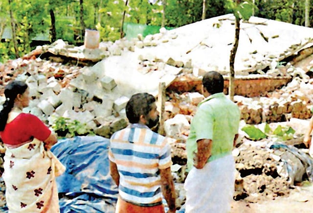திருச்சூரை அடுத்த எருமைபட்டி குண்டனூர் பகுதியை சேர்ந்தவர் ஆனந்த். விவசாயி. இவர் அதே பகுதியில் புதிதாக வீடு கட்டியுள்ளார். நேற்று முன்தினம் அதிகாலை வேளையில் பலத்த சத்தத்துடன் அந்த வீடு இடிந்து விழுந்தது. மேலும் அதன் அருகே உள்ள 2 வீடுகளும் இடிந்தன. அவற்றில் ஆட்கள் யாரும் இல்லாததால் உயிர்ப்பலி ஏதும் ஏற்படவில்லை.