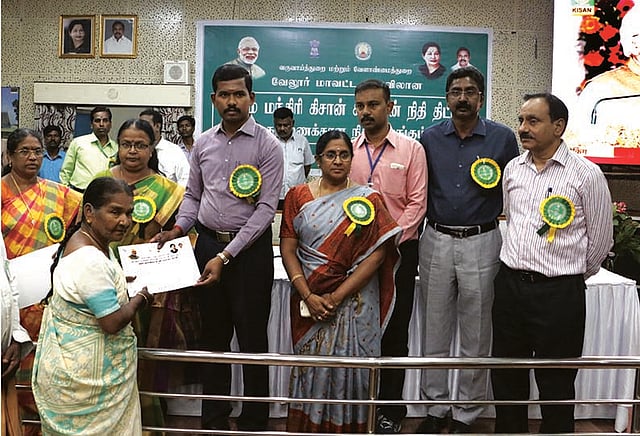 தொடர்ந்து வேலூர் மாவட்டத்தில் தேர்வு செய்யப்பட்ட சிறு மற்றும் குறு விவசாயிகளின் வங்கிக்கணக்கில் ரூ.2 ஆயிரம் நிதிஉதவி செலுத்தப்பட்டதற்கான ஆணை வழங்கும் தொடக்க விழா நடந்தது. விழாவுக்கு கலெக்டரின் நேர்முக உதவியாளர் (வேளாண்மை) ஐ.சி.சிங், வேளாண் இணை இயக்குனர் சுப்புலட்சுமி, விரிஞ்சிபுரம் வேளாண் ஆராய்ச்சி நிலைய தலைவர் நந்தகுமார் ஆகியோர் முன்னிலை வகித்தனர்.
