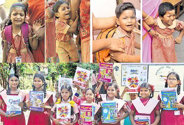 பள்ளிகளில் முதன் முதலாக சேர்ந்துள்ள பெரும்பாலான குழந்தைகள் பழக்கம் இல்லாத இடம் என்பதால் வகுப்புகளுக்கு செல்லமாட்டேன் என்று அடம்பிடித்து அழுதன. அந்த குழந்தைகளுக்கு சாக்லெட், மிட்டாய்களையும், விளையாட்டு பொருட்களையும் ஆசிரியர்கள் கொடுத்தனர்.