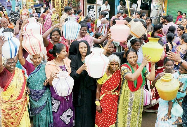 இதனால் ஆத்திரம் அடைந்த அந்த பகுதி மக்கள் நேற்று காலிக்குடங்களுடன் மல்லிகை புரம் மெயின்ரோட்டில் திரண்டனர். அவர்கள் திடீரென்று சாலை மறியலில் ஈடுபட்டனர். இது குறித்து தகவல் அறிந்த பாலக்கரை போலீசார் மற்றும் மாநகராட்சி அதிகாரிகள் அங்கு சென்று போராட்டத்தில் ஈடுபட்டவர்களுடன் பேச்சுவார்த்தை நடத்தினார்கள்.