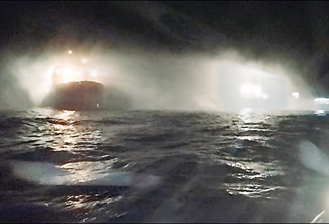 கடல்வாழ் உயிரினங்கள் ஆராய்ச்சியின்போது நடுக்கடலில் கப்பல் தீப்பிடித்து எரிந்தது விஞ்ஞானிகள் உள்பட 36 பேர் பத்திரமாக மீட்பு