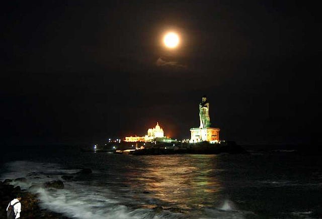 கன்னியாகுமரியில் நாளை மாலை 6.32 மணிக்கு மேற்கு பக்கம் உள்ள அரபிக்கடல் பகுதியில் சூரியன் மறையும். அதே நேரத்தில் கிழக்கு பக்கம் உள்ள வங்கக்கடலில் சந்திரன் நெருப்புப்பந்து போல மேலே எழும்பும்.