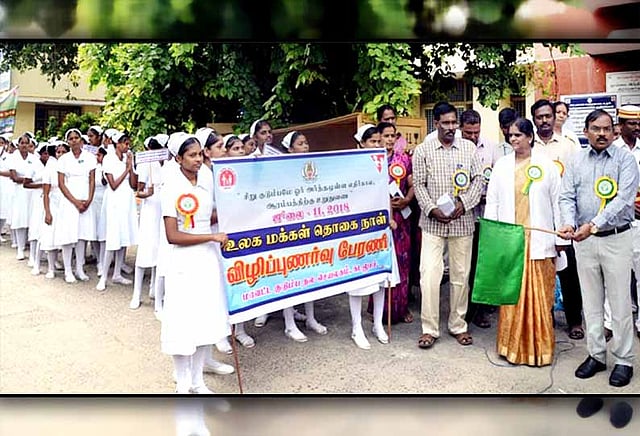 இதில் அரசு தலைமை மருத்துவமனை கண்காணிப்பாளர் டாக்டர் ஹபீசா, மருத்துவமனை திட்ட அலுவலர் டாக்டர் பரிமேல் அழகர், டாக்டர் அசோக்பாஸ்கர், தலைமை மருத்துவ அலுவலர்கள், குடும்பநல செயலக அலுவலர்கள், செவிலியர் பயிற்சி பள்ளி மாணவிகள், நாட்டுநலப்பணி திட்ட மாணவ-மாணவிகள் கலந்துகொண்டனர்.
