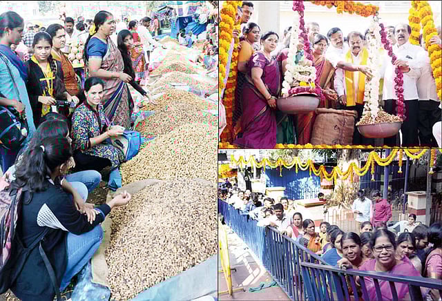 அதன்படி, பெங்களூரு தொட்டபசவண்ண கோவிலில் நேற்று கடலைக்காய் திருவிழா தொடங்கியது. இந்த திருவிழாவை பெங்களூரு மாநகராட்சி மேயர் கங்காம்பிகே தொடங்கி வைத்தார். கோவிலின் முன்பு அமைக்கப்பட்டு இருந்த துலாபாரத்தில் தொட்ட பசவண்ண சிலைக்கு நிகராக கடலைக்காய்களை வைத்து அவர் கடலைக்காய் திருவிழாவை தொடங்கி வைத்தார். அவருடன் கர்நாடக மேல்-சபை உறுப்பினர் டி.ஏ.சரவணா, எம்.எல்.ஏ.க்கள், கவுன்சிலர்கள் உடன் இருந்தனர். முன்னதாக, கோவிலில் உள்ள விநாயகர் சிலை, நந்தி சிலைக்கு சிறப்பு பூஜை செய்யப்பட்டு கடலைக்காய் அபிஷேகம் நடத்தப்பட்டது. பின்னர், மேயர் கங்காம்பிகே நிருபர்களுக்கு அளித்த பேட்டியில் கூறியதாவது:-