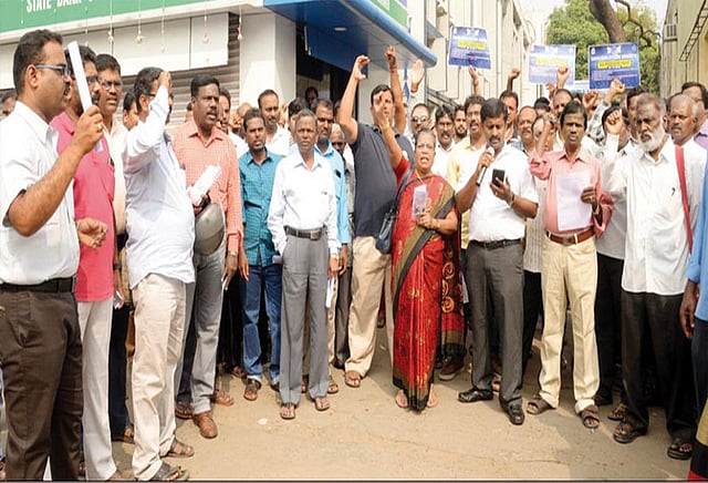 நேற்று அரசு மற்றும் தனியார் வங்கிகளின் ஊழியர்கள் மற்றும் அதிகாரிகள் அனைத்து சங்கங்களின் கூட்டமைப்பினர் வேலை நிறுத்த போராட்டம் செய்யப்போவதாக அறிவித்திருந்தனர். அதன்படி நேற்று வேலைநிறுத்த போராட்டம் நடந்தது.