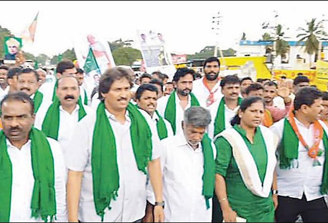 முன்னதாக சென்னப்பட்டணாவில் உள்ள கெங்கல் ஆஞ்சனேய சுவாமி கோவிலில் சிறப்பு பூஜைகளை செய்து பா.ஜனதாவினர் வழிபட்டனர். பின்னர் ஆஞ்சனேய சுவாமி கோவிலில் இருந்து பெங்களூருவுக்கு பா.ஜனதாவினர் பாதயாத்திரை மேற்கொண்டனர். நேற்று காலையில் தொடங்கிய பாதயாத்திரை நாளை (சனிக்கிழமை) பெங்களூருவை வந்தடைகிறது. பாதயாத்திரையில் பா.ஜனதா கட்சியை சேர்ந்த எம்.எல்.ஏ.க்களான ரேணுகாச்சார்யா, குமார் பங்காரப்பா மற்றும் நூற்றுக்கணக்கான விவசாயிகள் கலந்து கொண்டுள்ளனர்.
