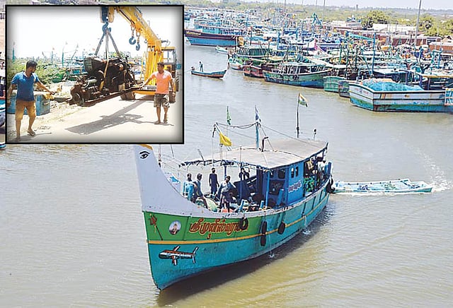 அந்த வகையில் கடலூர் துறைமுகத்தை சேர்ந்த மீனவர்கள் மீன்பிடி வலைகளை பழுதுபார்ப்பதற்காக அதனை தங்களது பகுதிக்கு லாரிகளில் எடுத்து சென்றதை காண முடிந்தது. மேலும் ஒரு சில மீனவர்கள் தங்களது படகு என்ஜின்களை சீரமைப்பதற்காக அதனை படகில் இருந்து கழட்டி பொக்லைன் எந்திரம் மூலம் எடுத்து சென்றனர்.