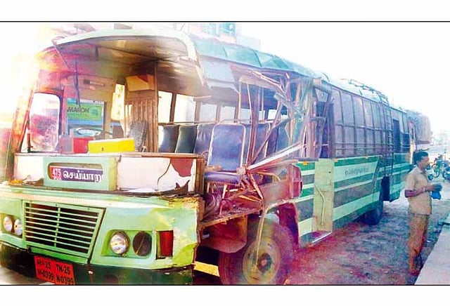பெங்களூருவில் இருந்து செய்யாறுக்கு நேற்று காலை பயணிகளுடன் அரசு பஸ் வந்து கொண்டிருந்தது. செஞ்சி சாலையில் சேத்துப்பட்டு அங்காள பரமேஸ்வரி அம்மன் கோவில் அருகே வந்தபோது சாலையோரமாக நின்றிருந்த லாரி மீது அரசு பஸ் பயங்கரமாக மோதியது. இந்த விபத்தில் பஸ்சின் முகப்பு கண்ணாடி சுக்குநூறாக உடைந்து சிதறியது. டிரைவர் ராமு, கண்டக்டர் சிவலிங்கம் மற்றும் பயணிகள் உள்பட 15-க்கும் மேற்பட்டோர் படுகாயம் அடைந்தனர்.