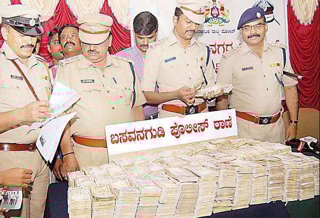 முன்னதாக கைதானவர்களிடம் இருந்து பறிமுதல் செய்து போலீஸ் நிலையத்தில் வைக்கப்பட்டு இருந்த ரூபாய் நோட்டுகளை சரணப்பா பார்வையிட்டார்.
