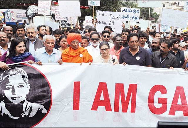மூத்த பத்திரிகையாளரான கவுரி லங்கேஷ் கொலை செய்யப்பட்டு ஒரு ஆண்டு ஆகிறது. இதுபற்றி விசாரணை நடத்தி வரும் சிறப்பு விசாரணை குழு, துப்பாக் கியால் சுட்டுக்கொலை செய்த நபர் உள்பட பலரை கைது செய்து உள்ளனர். இவர்கள் இந்துத்துவா சித்தாந்த அடிப்படையில் சனதன் சன்ஸ்தா, இந்து ஜனஜாக்ருதி சமிதி அமைப்புகளால் வழிகாட்டுதலின் படி செயல்பட்டுள்ளனர்.