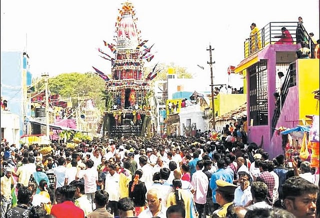 ஓசூரில் நடைபெற்ற சந்திரசூடேஸ்வரர் கோவில் தேரோட்டத்தில் ஆயிரக்கணக்கான பக்தர்கள் கலந்து கொண்டு தேரை வடம் பிடித்து இழுத்தனர்.