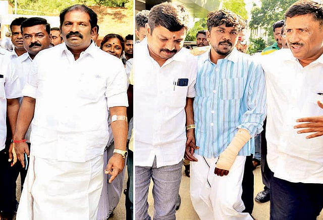 ஆனால் ரெயில் சென்ற பிறகும் அவர் கேட்டை திறக்காமல் காலதாமதம் செய்ததாக கூறப்படுகிறது. இதனால் காரை விட்டு இறங்கிய உதயகுமார் எம்.பி., மணிமாறனை சத்தம்போட்டதாக தெரிகிறது. இதன்காரணமாக இருவருக்கும் இடையே வாக்குவாதம் ஏற்பட்டு, பின்னர் 2 பேரும் மோதிக்கொண்டனர். மேலும் 2 பேரும் காயமடைந்து ஆஸ்பத்திரியில் சிகிச்சை பெற்றனர். இதுதொடர்பாக இருதரப்பை சேர்ந்தவர்களும் போலீசில் புகார் அளித்தனர்.