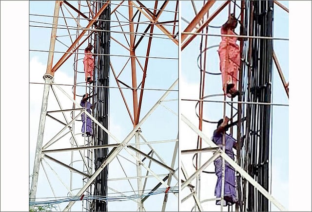 செல்போன் கோபுரத்தில் ஏறி போராட்டத்தில் ஈடுபட்ட பெண்களிடம் போலீசார் சமரச பேச்சுவார்த்தை நடத்தினர். ஆனால் அவர்கள் பொதுக்கழிப்பிடம் கட்டும் பணிகளை நிறுத்தினால்தான் கீழே இறங்குவோம் என்று கூறினர். பல முறை எடுத்துக்கூறியும் அந்த பெண்கள் கீழே இறங்காமல் தொடர்ந்து போராடி வந்தனர்.