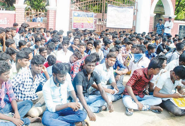 கடந்த 4 ஆண்டுகளாக நாட்டு நலப்பணித்திட்ட முகாமிற்கு மாணவ, மாணவிகளை அழைத்து செல்லவில்லை. எனவே இந்த ஆண்டு மாணவ, மாணவிகளை நாட்டு நலப்பணித்திட்ட முகாமிற்கு அழைத்து செல்ல வேண்டும். குடிநீர் தொட்டிகளை சரியான முறையில் பராமரிக்க வேண்டும். விடுதியில் மாணவ, மாணவிகளுக்கு தரமான உணவுகளை வழங்க நடவடிக்கை எடுக்க வேண்டும் என்பது உள்பட பல்வேறு கோரிக்கைகளை வலியுறுத்தி இந்த தர்ணா போராட்டம் நடைபெற்றது. இது குறித்து தகவல் அறிந்த கல்லூரி நிர்வாகத்தினர் மாணவர்களிடம் பேச்சுவார்த்தை நடத்தினர். இதில் உடன்பாடு ஏற்பட்டது. இதையடுத்து மாணவர்கள் தர்ணா போராட்டத்தை கைவிட்டு கலைந்து சென்றனர்.