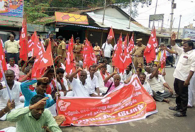 தர்மபுரி தலைமை தபால்நிலையம் முன்பு நடைபெற்ற மறியல் பேராட்டத்திற்கு மார்க்சிஸ்ட் கம்யூனிஸ்டு கட்சியின் மாவட்ட செயலாளர் ஏ.குமார், இந்திய கம்யூனிஸ்டு கட்சி மாவட்ட செயலாளர் எஸ்.தேவராசன் ஆகியோர் தலைமை தாங்கினர். மார்க்சிஸ்ட் கம்யூனிஸ்டு கட்சியின் மாவட்ட செயற்குழு உறுப்பினர்கள் மாரிமுத்து, இளம்பரிதி, நாகராசன், ராமச்சந்திரன், கிரைசாமேரி மற்றும் இந்திய கம்யூனிஸ்ட் கட்சியின் ஒன்றிய செயலாளர்கள் கோபால், கிருஷ்ணராஜ், மகாதேவன் ஆகியோர் கோரிக்கைகளை வலியுறுத்தி பேசினர். பின்னர் அவர்கள் மறியலில் ஈடுபட்டனர். இதை தொடர்ந்து போலீசார் மறியலில் ஈடுபட்ட 150 பேரை கைது செய்தனர்.