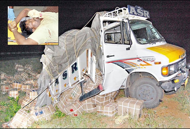 மதுரை செல்லூரில் இருந்து சேலத்துக்கு கடலை மிட்டாய் பெட்டிகளை ஏற்றிக்கொண்டு மினி லாரி சென்றது. மினி லாரியை செல்லூரை சேர்ந்த செல்வக்குமார் (வயது 30) என்பவர் ஓட்டினார். உதவியாளராக விக்னேஷ் (28) என்பவர் உடன் வந்தார். திண்டுக்கல்- கரூர் 4 வழிச்சாலையில் வேடசந்தூர் அருகே உள்ள கல்வார்பட்டி பகுதியில் லாரி சென்று கொண்டிருந்தது.