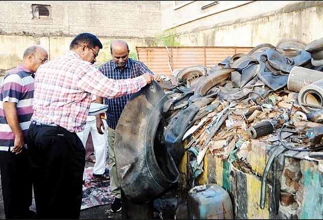 மேலும் இப்பணிமனையில் ஆங்காங்கே உள்ள உபயோகமற்ற பொருட்களில் தண்ணீர் தேங்கி நின்று, டெங்கு கொசுப்புழுக்கள் உற்பத்தியாக காரணமாக இருந்தது ஆய்வின்போது கண்டறியப்பட்டது.