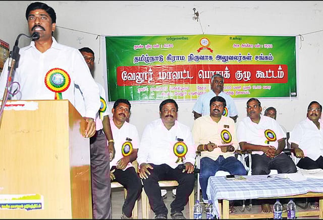 தமிழ்நாடு கிராம நிர்வாக அலுவலர்கள் சங்கத்தின் வேலூர் மாவட்ட பொதுக்கூட்டம் வேலூர் டவுன் ஹாலில் நடந்தது. கூட்டத்துக்கு மாவட்ட தலைவர் ஜீவரத்தினம் தலைமை தாங்கினார். துணைத் தலைவர் கொய்யாமணி, துணைச் செயலாளர் கதிரவன் ஆகியோர் முன்னிலை வகித்தனர். மாவட்ட செயலாளர் ரகு வரவேற்றார்.