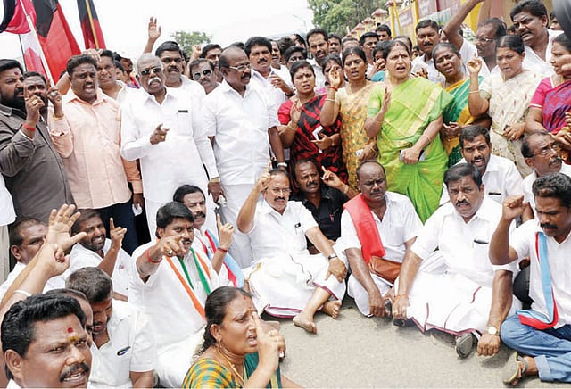 முன்னதாக மாவட்ட தி.மு.க. அலுவலகத்தில் இருந்து பஸ்கள் வெளியே செல்லும் இடம் வரை தி.மு.க. மற்றும் கூட்டணி கட்சிகளை சேர்ந்த நிர்வாகிகள், தொண்டர்கள் ஊர்வலமாக வந்தனர். அப்போது, அவர்கள் மத்திய, மாநில அரசுகளுக்கு எதிராகவும், அப்பாவி மக்கள் மீது துப்பாக்கி சூடு நடத்திய சம்பவத்தை கண்டித்தும் கோஷங்களை எழுப்பினர்.
