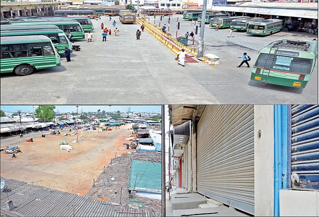 மாநகரின் இதயப்பகுதியாக உள்ள திருப்பூர் பழைய பஸ் நிலையம் மற்றும் பல்லடம் ரோடு, காங்கேயம் ரோடு, தாராபுரம் ரோடு, மங்கலம் ரோடு, அவினாசி ரோடு, பி.என்.ரோடு, ஊத்துக்குளி ரோடு என அனைத்து பகுதிகளிலும் கடைகள் அடைக்கப்பட்டு இருந்தன. எப்போதும் பரபரப்பாக காணப்படும் புதுமார்க்கெட் வீதியில் உள்ள ஜவுளி கடைகள், நகைக்கடைகள் அடைக்கப்பட்டு இருந்தன.
