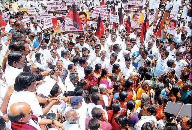 இந்த ஆர்ப்பாட்டத்தில் மாநில நிர்வாகிகள் கீரை விசுவநாதன், ராஜேந்திரன், நகர செயலாளர் தங்கராஜ், வக்கீல் அணி மாவட்ட நிர்வாகி மணி, ஒன்றிய செயலாளர்கள் சேட்டு, சண்முகம், கோபால், செல்வராஜ், அன்பழகன், சிவப்பிரகாசம், செங்கண்ணன், சித்தார்த்தன், முன்னாள் எம்.எல்.ஏ.க்கள் மற்றும் கட்சி நிர்வாகிகள், சார்பு அமைப்பு மாவட்ட நிர்வாகிகள், தொண்டர்கள் திரளாக கலந்து கொண்டனர்.
