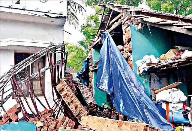 ஆனால் வீட்டின் அருகில் நிறுத்தப்பட்டிருந்த 2 மோட்டார்சைக்கிள்கள் பலத்த சேதமடைந்தன. வீட்டை இழந்த ராக்கு நிவாரண உதவி மற்றும் அரசு வீடு வழங்கும் திட்டத்தின் கீழ் தனக்கு வீடு கட்ட மாவட்ட நிர்வாகம் உதவி செய்ய வேண்டும் என்று வேண்டுகோள் விடுத்துள்ளார்.