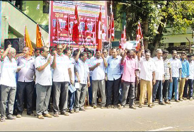 ஊதிய உயர்வு, காலிபணியிடங்களை நிரப்ப வேண்டும் என்பன உள்ளிட்ட பல்வேறு கோரிக்கைகளை வலியுறுத்தி மின்வாரிய ஊழியர்கள் வேலைநிறுத்த போராட்டத்தில் ஈடுபட போவதாக சி.ஐ.டி.யு., பி.எம்.எஸ். உள்ளிட்ட தொழிற்சங்கங்கள் அறிவித்து இருந்தது. இந்த நிலையில் அரசின் பேச்சுவார்த்தையில் சுமூக தீர்வு எட்டப்படவில்லை. இதனை தொடர்ந்து நேற்று திட்டமிட்டபடி மின்வாரிய ஊழியர்கள் வேலை நிறுத்த போராட்டத்தை தொடங்கினர். வேலைநிறுத்த போராட்டத்தை விளக்கி திருவாரூர் மின்வாரிய மேற்பார்வை பொறியாளர் அலுவலகம் முன்பு ஆர்ப்பாட்டம் நடந்தது. ஆர்ப்பாட்டத்திற்கு பாரதீய மின் தொழிலாளர் சம்மேளனம் (பி.எம்.எஸ்) திட்ட தலைவர் மோகன் தலைமை தாங்கினார். மின் ஊழியர் மத்திய அமைப்பு (சி.ஐ.டி.யு.) அமைப்பு செயலாளர் சுப்பிரமணியன் முன்னிலை வகித்தார். ஆர்ப்பாட்டத்தில் குறைந்தபட்ச ஊதியம் ரூ.18 ஆயிரம் வழங்க வேண்டும் என்பது உள்ளிட்ட பல்வேறு கோரிக்கைகளை வலியுறுத்தி கோஷங்கள் எழுப்பினர்.
