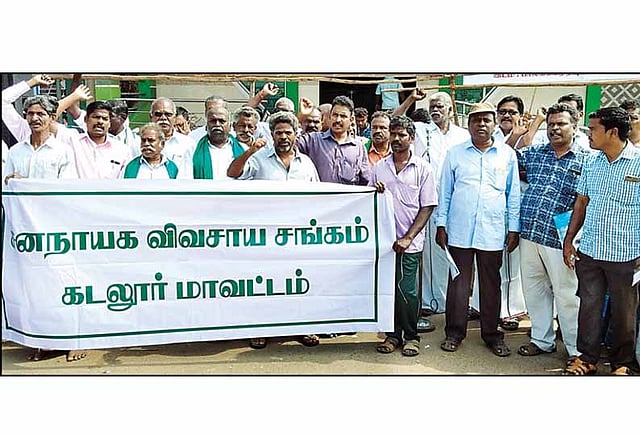 விருத்தாசலம் பாலக்கரையில் ஜனநாயக விவசாயிகள் சங்கம் மற்றும் வயலூர் கிராம மக்கள் சார்பில் ஆர்ப்பாட்டம் நடைபெற்றது. இதற்கு மாவட்ட அமைப்பாளர் கந்தசாமி தலைமை தாங்கினார். பழனிசாமி, கிருஷ்ணமூர்த்தி, சுரேஷ், அன்பழகன் ஆகியோர் முன்னிலை வகித்தனர். மாநில அமைப்பாளர் ராமர், தென்னிந்திய கரும்பு விவசாயிகள் சங்க மாநில செயலாளர் கார்மாங்குடி வெங்கடேசன், விருத்தாசலம் விழிப்புணர்வு இயக்க தலைவர் வக்கீல் தனவேல் ஆகியோர் கலந்துகொண்டு கண்டன உரை யாற்றினார்கள். வடகிழக்கு பருவமழை குறைந்துவிட்டதால் 2018-19-ம் ஆண்டு கடலூர் மாவட்டத்தை வறட்சி மாவட்டமாக அறிவித்து விவசாயிகளின் துயர் துடைக்க நடவடிக்கை எடுக்க வேண்டும்.