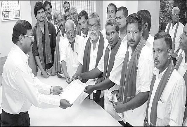 விவசாய விளைபொருட்களுக்கு லாபகரமான விலை கொடுக்காமலும், சாகுபடி செய்ய தண்ணீர் கொடுக்காமலும் மத்திய, மாநில அரசு ஏமாற்றி வருவதால் வாங்கிய கடன்களை கட்ட முடியாத சூழ்நிலை ஏற்பட்டுள்ளது. இனியும் இந்த நிலை ஏற்படாமல் இருக்க மத்திய அரசு, அனைத்து விவசாயிகளின் கடன்களை தள்ளுபடி செய்ய வேண்டும். ஆறுகளில் தடுப்பணை கட்டவும், வரத்து வாய்க்கால்களை தூர்வாரவும் வேண்டும். கூட்டுறவு சங்கங்களில் அனைத்து விவசாயிகளுக்கும் கடன் கிடைக்கவும், 60 வயது நிரம்பிய விவசாயிகளுக்கு மாதம் ரூ.5 ஆயிரம் ஓய்வூதியம் வழங்க வேண்டும். விழுப்புரம் மாவட்டத்தில் ஓடும் தென்பெண்ணை ஆற்றை கெடிலம் ஆற்றோடு இணைக்க வேண்டும். வீடூர் அணையை காப்பாற்ற நந்தன் கால்வாய் திட்டத்தை நடைமுறைப்படுத்த வேண்டும்.