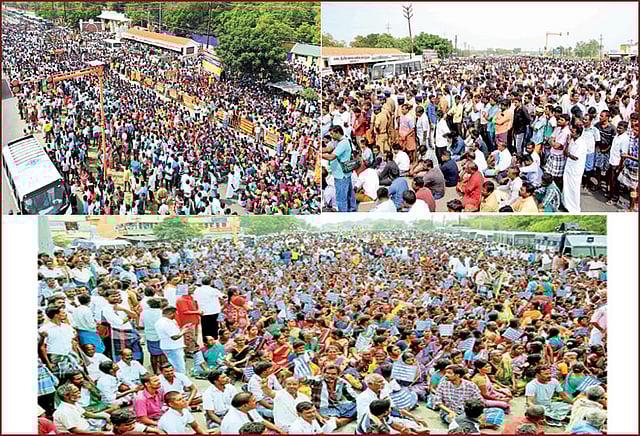 தேசிய நெடுஞ்சாலையிலுள்ள கலெக்டர் அலுவலகம் முன்பு இந்த போராட்டம் நடந்ததால் வாகன போக்குவரத்து மாற்றுப்பாதையில் நடந்தது. போராட்டத்தையொட்டி 2 ஆயிரத்துக்கும் மேற்பட்ட போலீசார் மதுரை சரக டி.ஐ.ஜி. பிரதீப்குமார், போலீஸ் சூப்பிரண்டு ராஜராஜன் ஆகியோர் தலைமையில் பாதுகாப்பு பணியில் ஈடுபட்டனர்.
