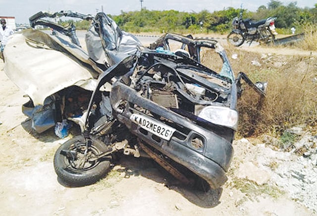 சங்கருடன், அவரது தம்பி ஆனந்த் (40), இவரது மனைவி சுமதி (32), நண்பர் குபேந்திரன் (51), அவரது மனைவி மற்றொரு சுமதி (45) ஆகியோர் சென்றனர். காரை பெங்களூரு சாய்பாபா நகரைச் சேர்ந்த சேர்ந்த டிரைவர் மணி (45) ஓட்டிச்சென்றார். அவர்கள் சாமி தரிசனம் முடித்து விட்டு நேற்று முன்தினம் இரவு பெங்களூருவுக்கு காரில் திரும்பிக் கொண்டிருந்தனர். அவர்கள் வந்த கார் நள்ளிரவு 12.15 மணி அளவில் கிருஷ்ணகிரி மாவட்டம் சூளகிரியை அடுத்த காமன்தொட்டி-அட்டகுறுக்கி இடையே தேசிய நெடுஞ்சாலையில் சென்று கொண்டிருந்தது.