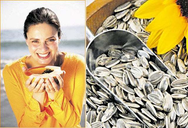 * சூரியகாந்தி விதைகள் ஆன்டிஆக்சிடென்ட் குணங்களைக் கொண்டுள்ளன. உயர் ரத்த அழுத்தத்தைக் கட்டுப்படுத்தவும், கீழ்வாதம், ஆஸ்துமாவை தடுக்கவும் உதவுகின்றன. செரிமானம், இதய ஆரோக்கியம் மற்றும் எலும்பு ஆரோக்கியத்துக்கும் துணைபுரியும். நோய் எதிப்பு சக்தியையும் அதிகரிக்கச் செய்யும். சூரியகாந்தி விதைகளை சாலட்டுகளாகவோ, தானியங்களுடன் சேர்த்தோ சாப்பிடலாம்.