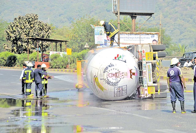 தீயணைப்பு படையினர் மற்றும் மீட்பு குழுவினர் அந்த கியாஸ் டேங்கர் லாரியை அப்புறப்படுத்தும் பணியில் ஈடுபட்டனர்.