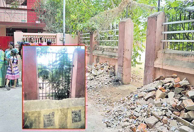கடந்த 12 வருடங்களுக்கு முன்பு அந்த பகுதி குடியிருப்புவாசிகளின் ஒரு சங்கத்தினர் ஜவகர் நகர் 3-வது பிரதான சாலையில் உள்ள இந்த விளையாட்டு மைதானத்தின் பின்புற வாயில் இரும்பு கதவை பூட்டி, சிறிய இடைவெளி விட்டு அந்த நுழைவு வாயிலை அடைத்து 3 அடி உயரத்துக்கு சுவர் எழுப்பினர்.