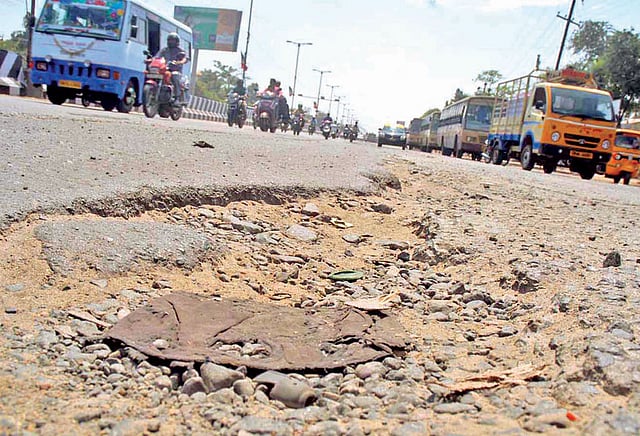 குறிப்பாக தாம்பரம் பெட்ரோல் பங்க் பகுதி சிக்னலில் இருந்து தாம்பரம் சானடோரியம் மெப்ஸ் சிக்னல் வரை உள்ள பகுதியில் சாலையின் பெரும்பாலான இடங்களில் பள்ளம் ஏற்பட்டும், சிமெண்டு கலவைகள் பெயர்ந்தும் உள்ளது.