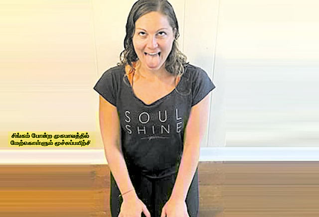 சிங்கம் போன்று முகத்தை கர்ஜனை செய்யும் கோணத்தில் வைத்துக்கொண்டு மூச்சுப் பயிற்சி செய்யலாம். தரையில் அமர்ந்து மூச்சை உள் இழுத்தவாறு உதடுகள், கண்கள், மூக்கை மூடிக்கொள்ள வேண்டும். சிறிது நேரம் கழித்து நாக்கை வெளியே நீட்டியபடி மூச்சை வெளியேற்ற வேண்டும். அப்போது கண்களை திறந்து கொண்டு அங்கும் இங்கும் பார்வையை சுழலவிட வேண்டும். இவ்வாறு தினமும் சில முறை செய்து வரலாம்.