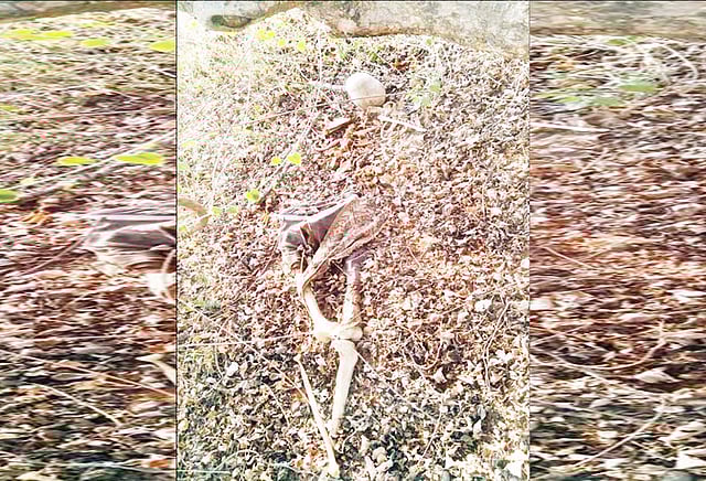 வனப்பகுதியானது புதர்கள் மண்டி உள்ளே செல்ல முடியாத நிலை இருந்தது. சிறிது தூரம் சென்றதும், வனத்துக்குள் கொடிய விஷமுள்ள பாம்புகள் இருப்பது தெரியவந்தது. இதையடுத்து போலீசார் வனத்தைவிட்டு வெளியேறினார்கள். பிறகு வனத்துறை அதிகாரிகளுக்கு தகவல் கொடுத்து வரவழைக்கப்பட்டனர். அதன் பிறகு போலீசார் வனத்துறை அதிகாரிகளுடன் வனப்பகுதிக்குள் சென்றனர். அப்போது அங்கு ஒரு புதர் அருகில் மனித எலும்புக்கூடை கண்டுபிடித்தனர். மாலை நேரமாகிவிட்டதால் வனப்பகுதிக்குள் வெளிச்சம் குறைவாக இருந்தது. இதனால் போலீசார் எழும்புக்கூடுக்கு பாதுகாப்பு ஏற்பாடு செய்துவிட்டு, வனத்தைவிட்டு வெளியேறி விட்டனர்.