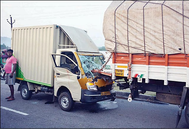சென்னை மணப்பாக்கம் எம்.ஜி.ஆர். நகர் பகுதியைச் சேர்ந்தவர் ராஜேந்திரன் (வயது 33). சரக்கு வேன் டிரைவர். நேற்று முன்தினம் இவர் கிருஷ்ணகிரி-பெங்களூரு தேசிய நெடுஞ்சாலையில் சர்வீஸ் ரோட்டில் சென்று கொண்டிருந்தார். அந்த நேரம் முன்னால் லாரி ஒன்று எந்தவித சிக்னல்களும் காட்டாத நிலையில் நிறுத்தப்பட்டு இருந்தது.