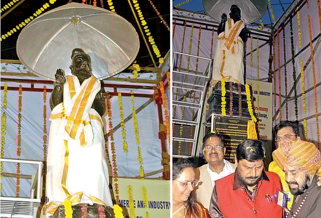 திருவள்ளுவர், புத்தர் சிலைகளின் திறப்பு விழா நேற்று மாலை நடந்தது. விழாவுக்கு எம்.எல்.ஏ. சர்தார் தாராசிங், கிரித் சோமையா எம்.பி. ஆகியோர் தலைமை தாங்கினர். கவுரவ அழைப்பாளராக மாநில வீட்டுவசதித்துறை மந்திரி பிரகாஷ் மேத்தா கலந்துகொண்டார். விழாவில் சிறப்பு அழைப்பாளராக மத்திய மந்திரி ராம்தாஸ் அத்வாலே கலந்துகொண்டு திருவள்ளுவர் சிலையையும், புத்தர் சிலையையும் திறந்து வைத்து பேசினார். அப்போது அவர் கூறியதாவது:-