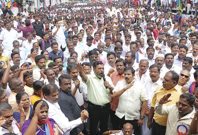 இந்த ஆர்ப்பாட்டத்தின் முடிவில் விடுதலை சிறுத்தைகள் கட்சி தலைவர் தொல்.திருமாவளவன் நிருபர்களுக்கு பேட்டி அளித்தார். அப்போது அவர் கூறியதாவது:-