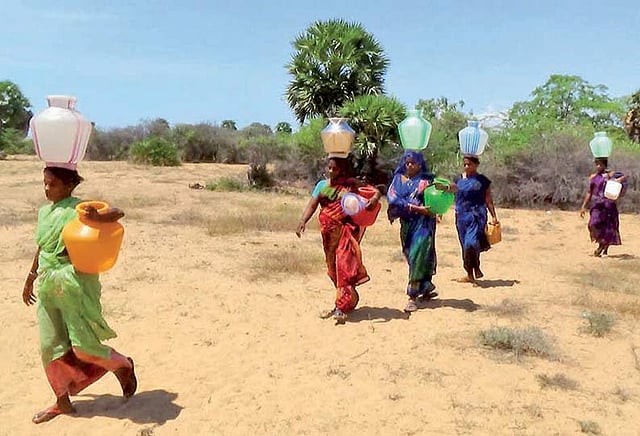 திருவாடானை யூனியனில் உள்ள 47 ஊராட்சிகளிலும் கடும் குடிநீர் பிரச்சினை ஏற்பட்டுள்ளது. அனைத்து கிராமங்களிலும் பொதுமக்கள் தினமும் பல மைல் தூரம் சென்று நீண்டநேரம் காத்திருந்து தண்ணீர் எடுத்து வரும் அவல நிலைக்கு தள்ளப்பட்டுள்ளனர். எங்கு பார்த்தாலும் குடிநீருக்காக பிரத்யேகமாக பொதுமக்களே தயாரித்துள்ள தள்ளுவண்டிகளில் குடங்களுடன் பெண்கள் அலைவதை பார்க்க முடிகிறது. இரவு நேரங்களில் பெண்கள் தங்கள் குழந்தைகளுடன் ஒரு குடம் தண்ணீருக்காக காத்துக்கிடப்பதால் பெரும் அவதிக்கு ஆளாகியுள்ளனர்.