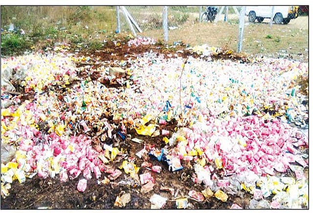 பல பாக்கெட்டுகள் உடைந்து துர்நாற்றம் வீசுவதால் அப்பகுதி மக்கள் அவதி அடைந்து வருகின்றனர். இதுகுறித்து அப்பகுதி மக்கள் நகராட்சி குப்பை அள்ளும் தொழிலாளர்களிடம் தெரிவித்தனர். ஆனால் குளிர்பான பாக்கெட்டுகள் தனிநபருக்கு சொந்தமான இடத்தில் கிடப்பதால் நாங்கள் அவற்றை அள்ளி செல்ல மாட்டோம் என்று கூறிவிட்டு அங்கிருந்து சென்று விட்டனர்.