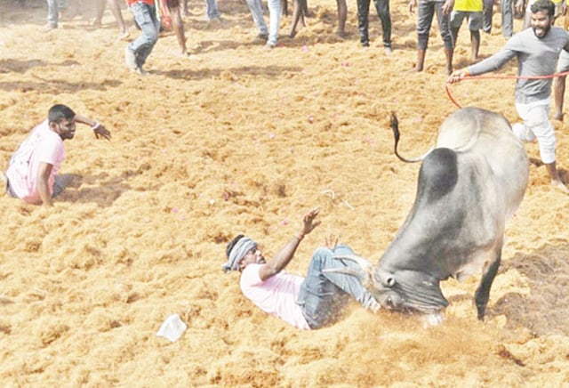 மேலும் முத்துமாரியம்மன் கோவில் திடலில் வாடிவாசல் அமைக்கப்பட்டது. முதலில் காளைகளுக்கு மருத்துவ பரிசோதனை நடைபெற்றது. தொடர்ந்து நேற்று காலை கலெக்டர் கணேஷ் ஜல்லிக்கட்டை கொடியசைத்து தொடங்கி வைத்தார். முதலில் கோவில் காளை அவிழ்த்து விடப்பட்டது. அதன்பின்னர் வாடிவாசலில் இருந்து அலங் கரிக்கப்பட்ட காளைகள் ஒவ்வொன்றாக அவிழ்த்து விடப்பட்டன.