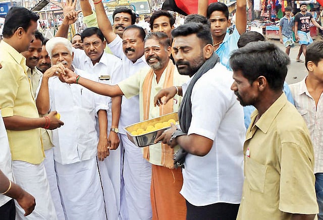 2 ஜி வழக்கில் இருந்து கனிமொழி, ராசா விடுதலை: தி.மு.க.வினர் இனிப்பு வழங்கி கொண்டாட்டம்